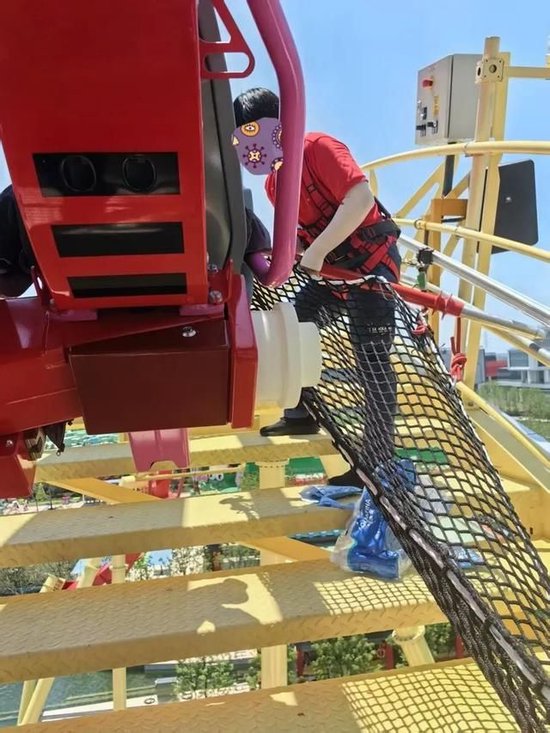 6月28日,有网友在社交媒体上发帖说,当日乐高大飞车卡住了,游客最后是自己从黄色梯子上走下来的。